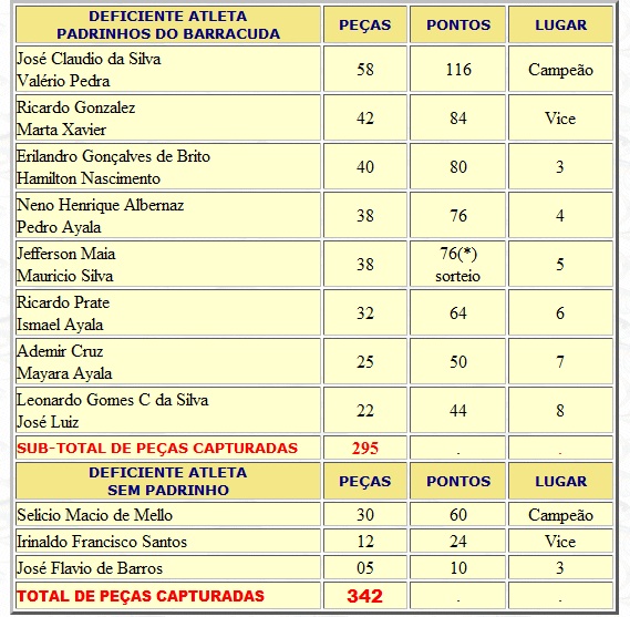 E, EM MEIO A COMEMORATIVA PREMIAÇÃO, BRACONY AINDA ME FEZ MAIS UMA SURPRESA, ANUNCIOU A CRIAÇÃO DO SETOR DE PESCA ADAPTADA NO CLUBE BARRACUDA, E ASSIM, DE CHOFRE, AINDA ME NOMEOU COMO FUTURO COORDENADOR DO NOVÍSSIMO DEPARTAMENTO - CLARO QUE NÃO ME FIZ DE ROGADO, POIS, É MAIS UM PASSO NA NOSSA META DE INSTITUIR MAIS ESTA MODALIDADE NO CENÁRIO DE NOSSO PARADESPORTO, AINDA MAIS COM A ANUÊNCIA DA CBPDS. COMO NA SEQUÊNCIA NUM POUCO DO RELATÓRIO DO SITE DA CBPDS, APRESENTADO PELO COMPETENTE ÁRBITRO DA PROVA: