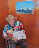 E agora a regra foi a mesma, uma tela produzida no local, em cerca de cinco horas, entregue sem assinar para ir até os jurados na avaliação pelas obras sem saber do autor. No meio de quase 30 pintores inscritos, eu, o único apbp.com.br me senti imensamente grato por competir de igual pra igual com outros grandes pintores sem deficiência no fazer arte 'dito convencional'.